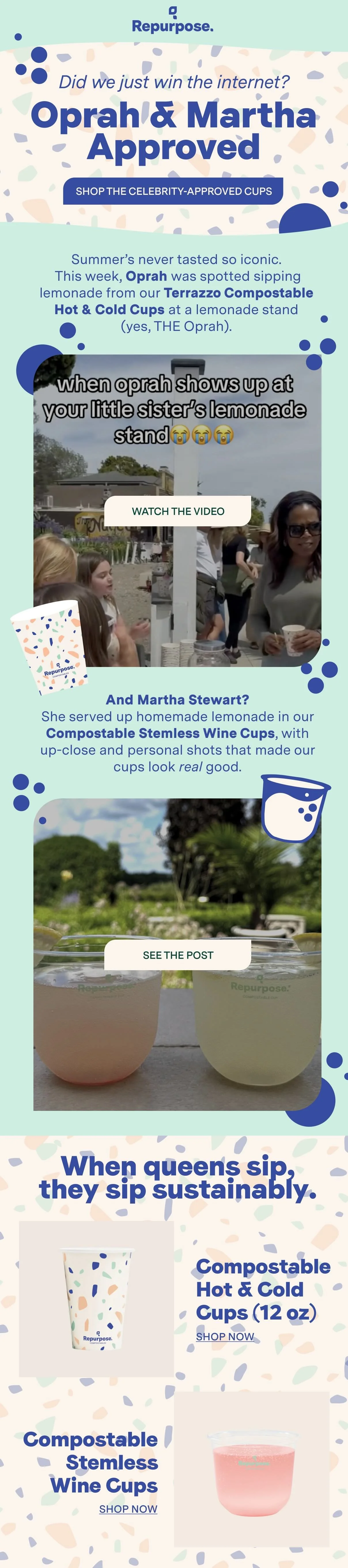 I’ve been working with a CPG company as their email marketing strategist, copywriter, designer, and ecommerce coordinator (further proof of being an onion). They create sustainable, compostable home essentials that make life simpler and kinder to the planet. My work has even been featured in Fast Company’s “No longer startups, these 5 brands are moving into growth mode” for campaign success. I also partner with an entertainer in the same capacity, managing the site and building campaigns that connect directly with fans.