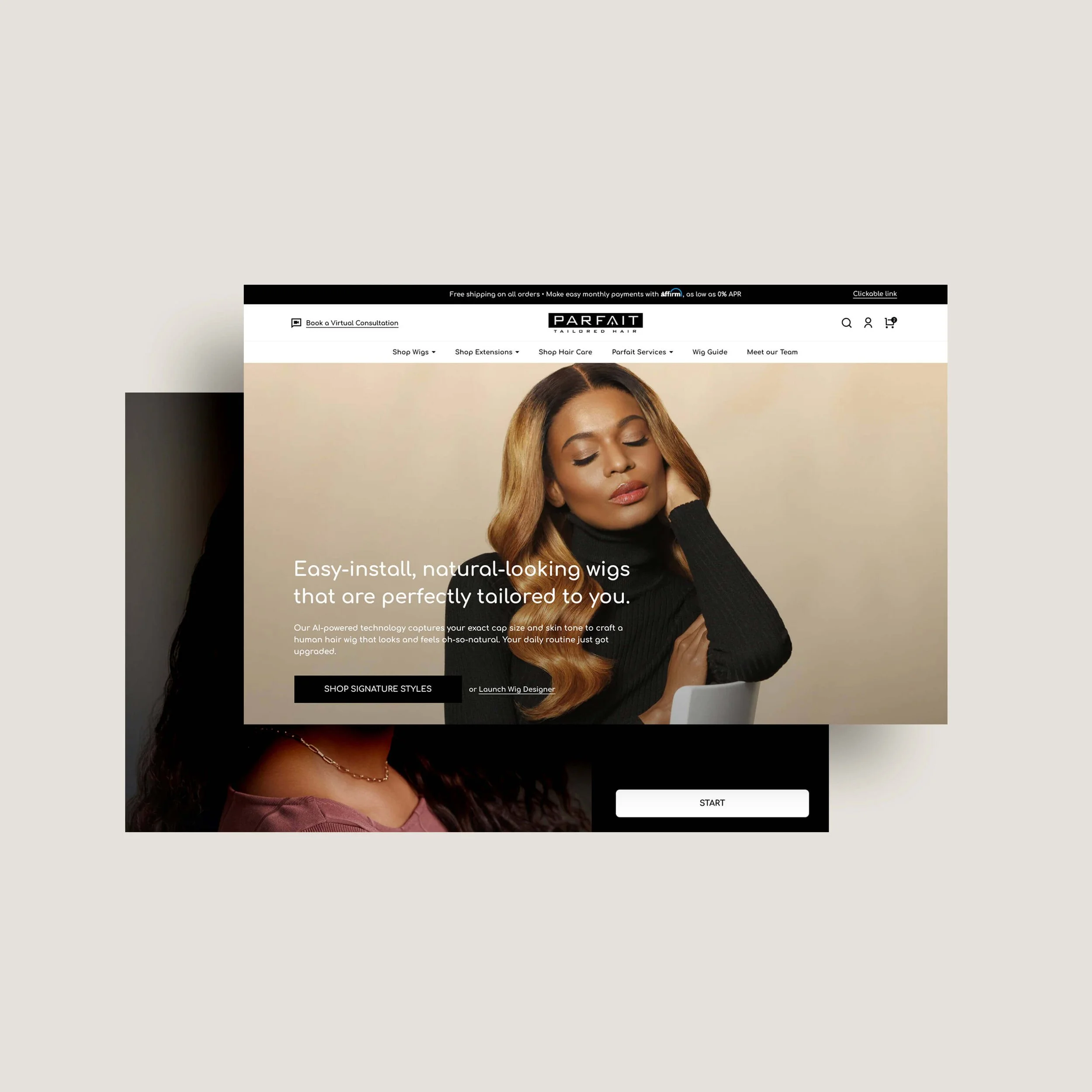 A project that I’m really proud of is Parfait. Backed by Serena Ventures, Parfait uses AI to create wigs that are tailored to each customer. As well as redesigning most of their website, I also designed and built a multi-step product customizer to help customers move seamlessly through what would be an otherwise complex product page.