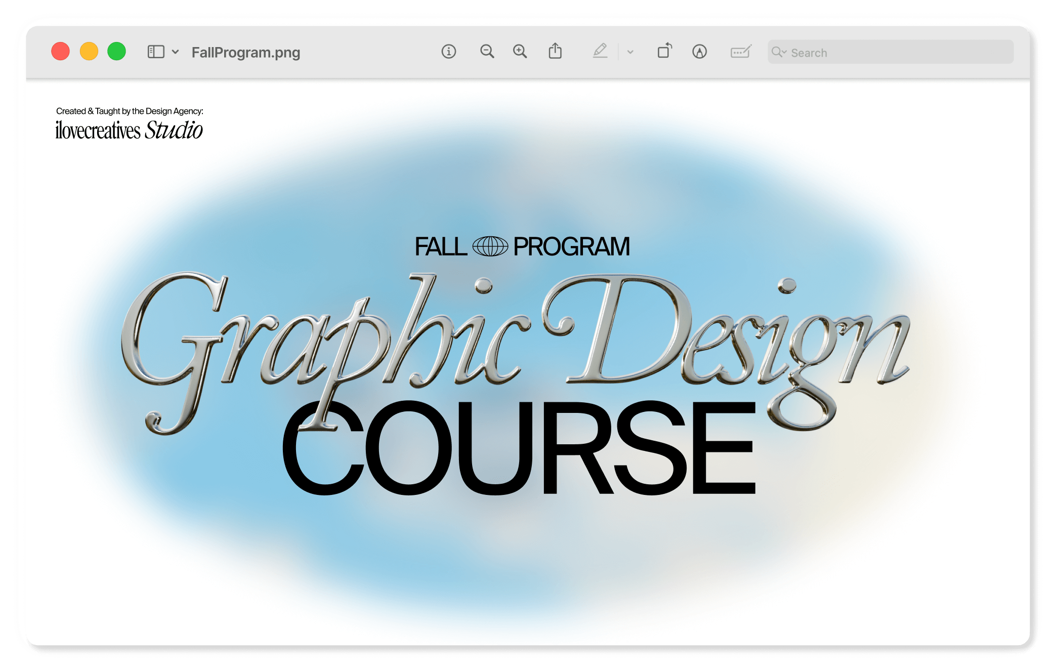 Please note: Graphic Design Course students who enrolled before August 31, 2025 are not eligible. If you’re an existing Graphic Design Course student, you can still join the Fall Program by enrolling with the program fee. Please email us at hello@ilovecreatives.com with the subject line "GDC Fall Program Add Me Plz" so we can verify and provide the link for you.