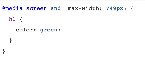 This rule is saying: only on a screen size of 749px or smaller (mobile) Heading 1 will be the color green.