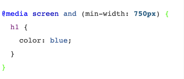 This rule is saying: only on a screen size of 750px or larger (tablet & desktop) Heading 1 will be the color blue.
