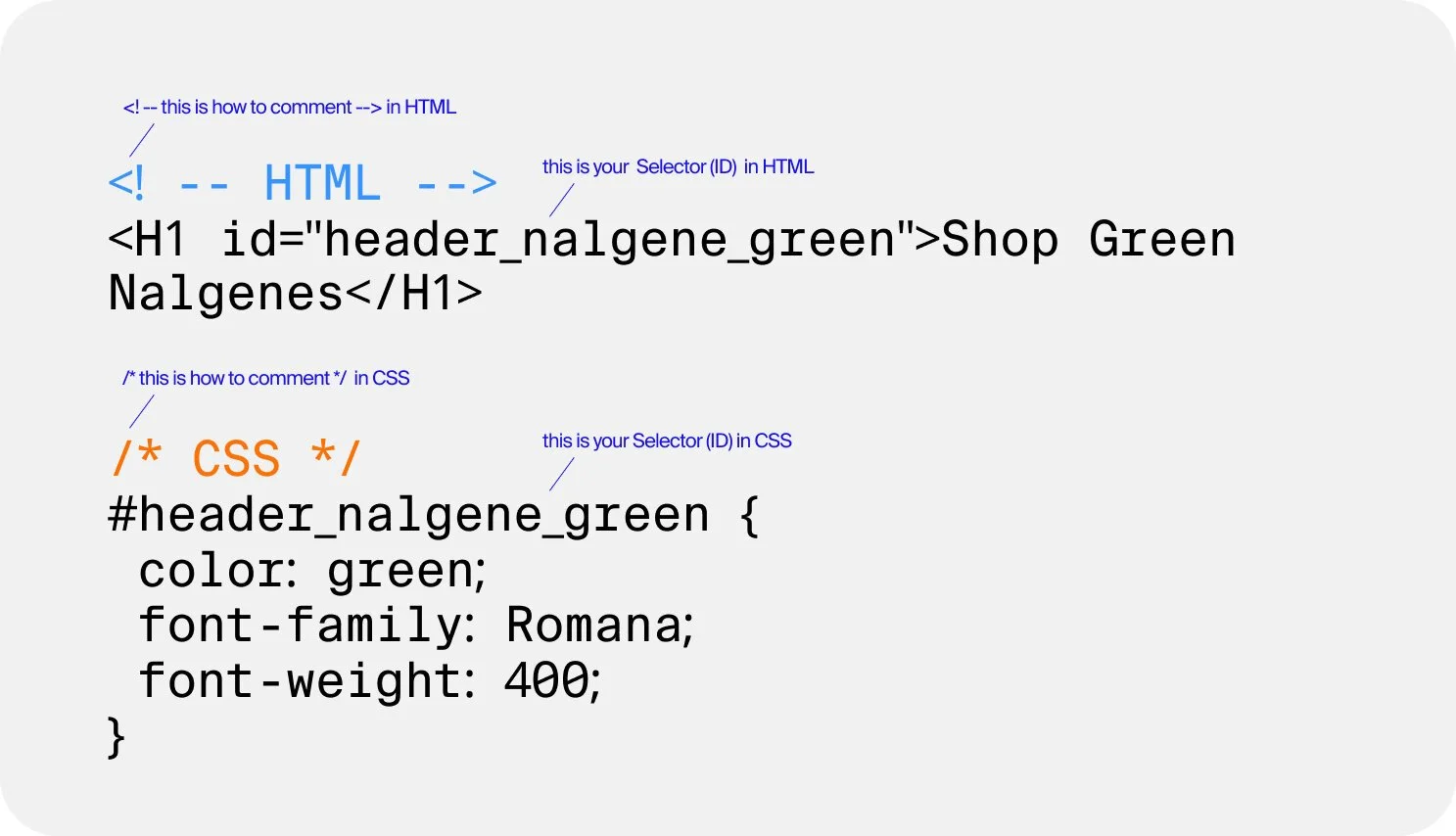 Great! Now what if I want one specific H1 header to be green, so it reaaally stands out? 💚IDs to the rescue!