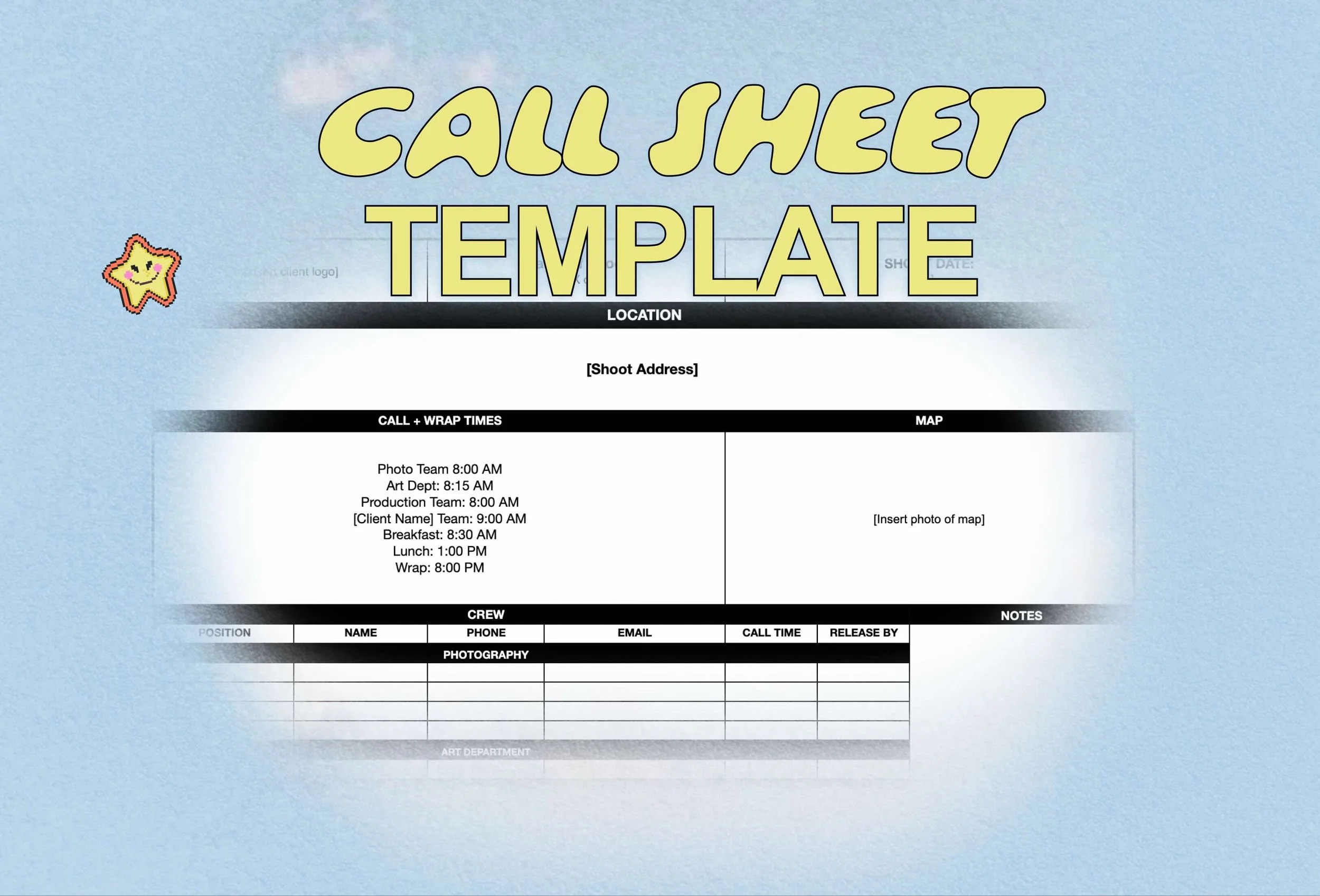 Here’s a call sheet template that you can use before and on shoot day. This ensures all talent, crew, and collaborators know the what/when/where.
