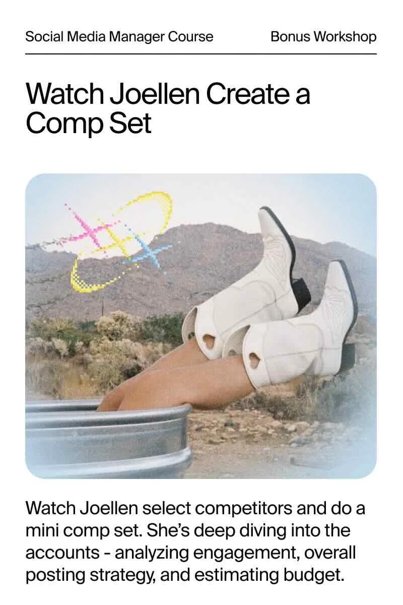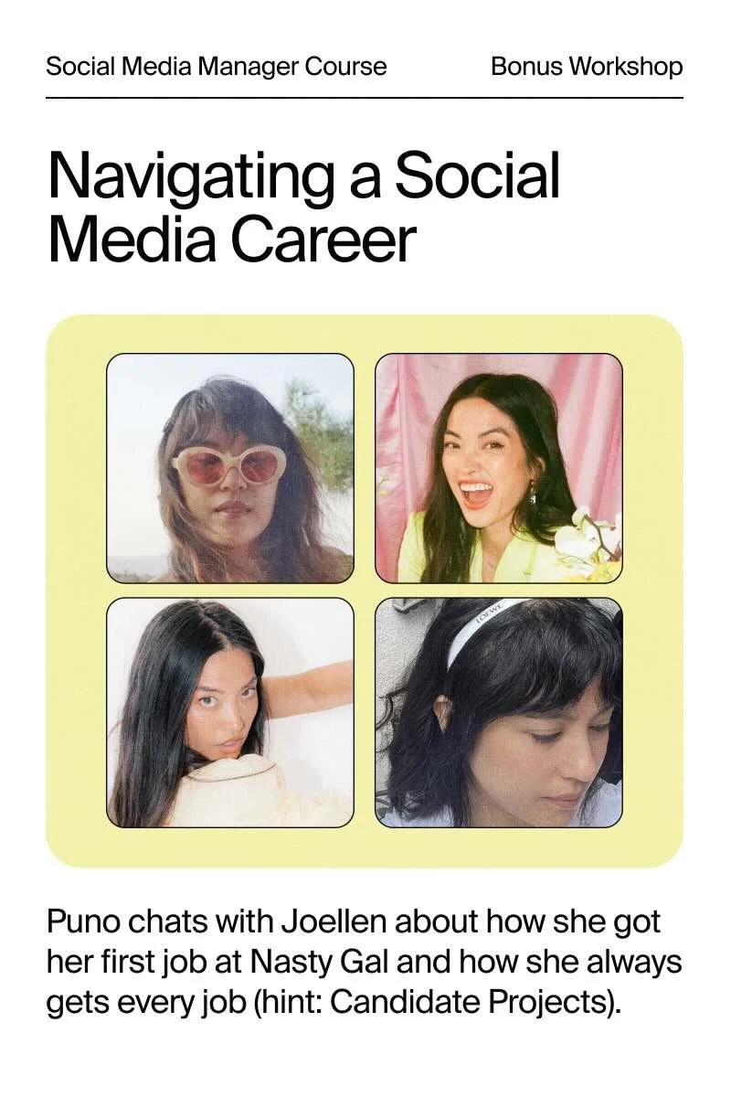 Social media is all fun and games until you have to sit down and create a social strategy. That’s actually not true - let us show you! A strategy can be daunting, but we’ll do it together. We’ll go over discovering your purpose & setting goals, figure out WTF you’ll post, best case practices for social platforms (e.g. Instagram, TikTok, Twitter, Youtube, Facebook, LinkedIn), develop your tone & voice, learn how to do community management right, and execute a social media audit. Yep, that’s just the first section!